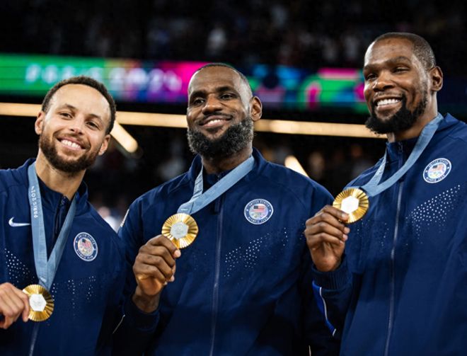 在2024年的巴黎奥运会当中,詹姆斯、杜兰特与库里三大老牌超级巨星率队出战。美国男篮在巴黎奥运会决赛,以98-87战胜东道主法国男篮,实现奥运会5连冠,也是队史第17次夺得奥运会金牌。