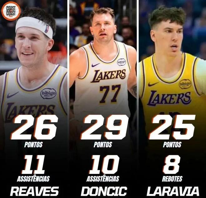 拉拉维亚在湖人三连胜期间,分别轰下27分8板2助1断、13分5板2助3断,以及25分8板3助4断,场均数据为21.7分7板2.3助2.7断,两项命中率78.1%和66.7%,真实命中率高达87.2%。